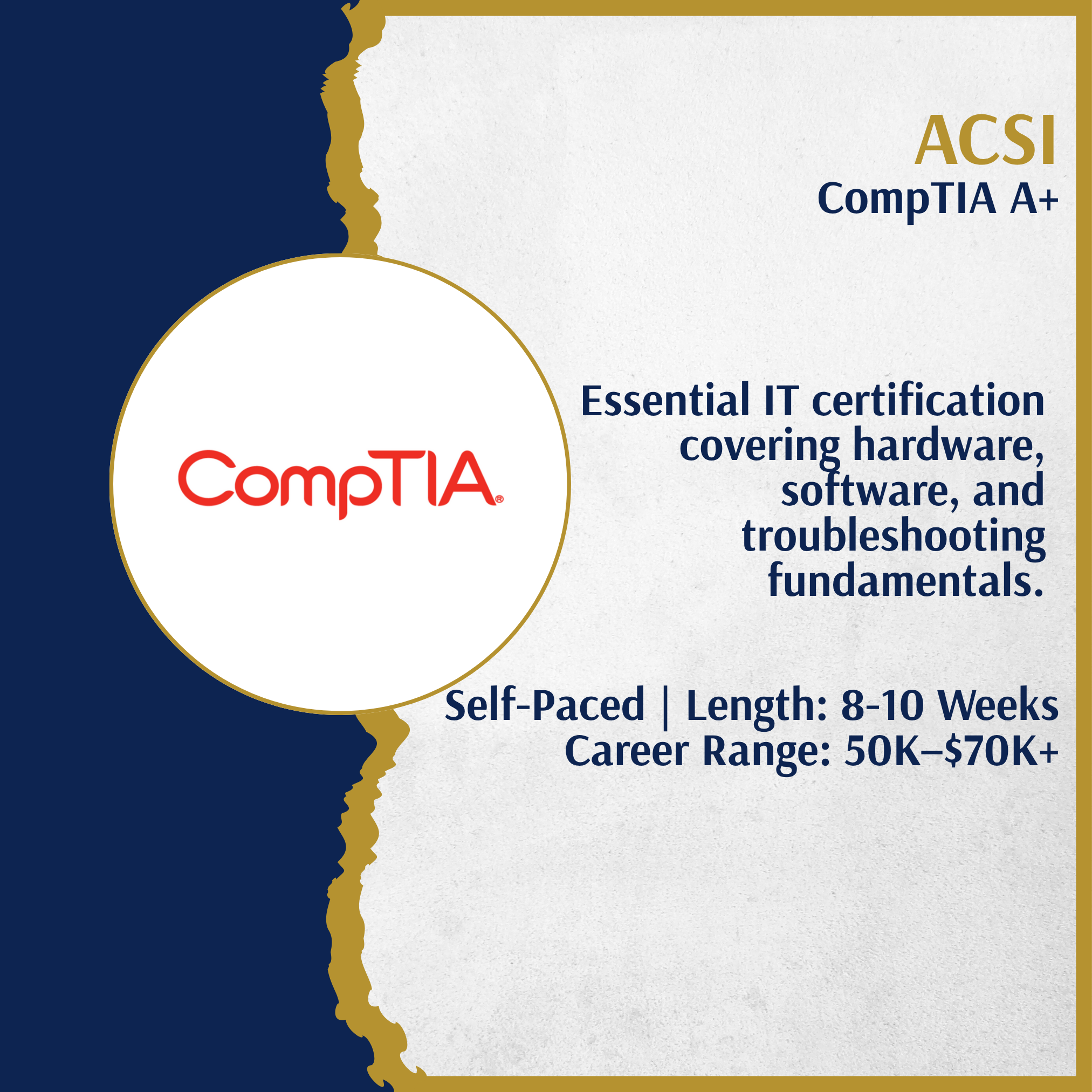 CompTIA A+ certified professionals typically earn between $55K–$70K, with a clear path toward Network+, Security+, or Cybersecurity roles—all included in your membership.